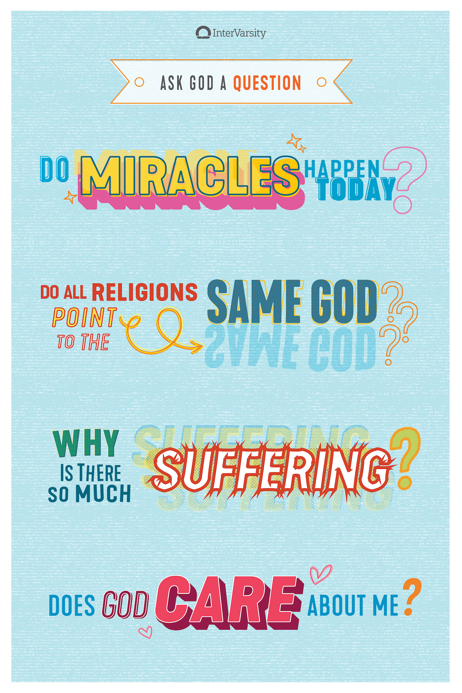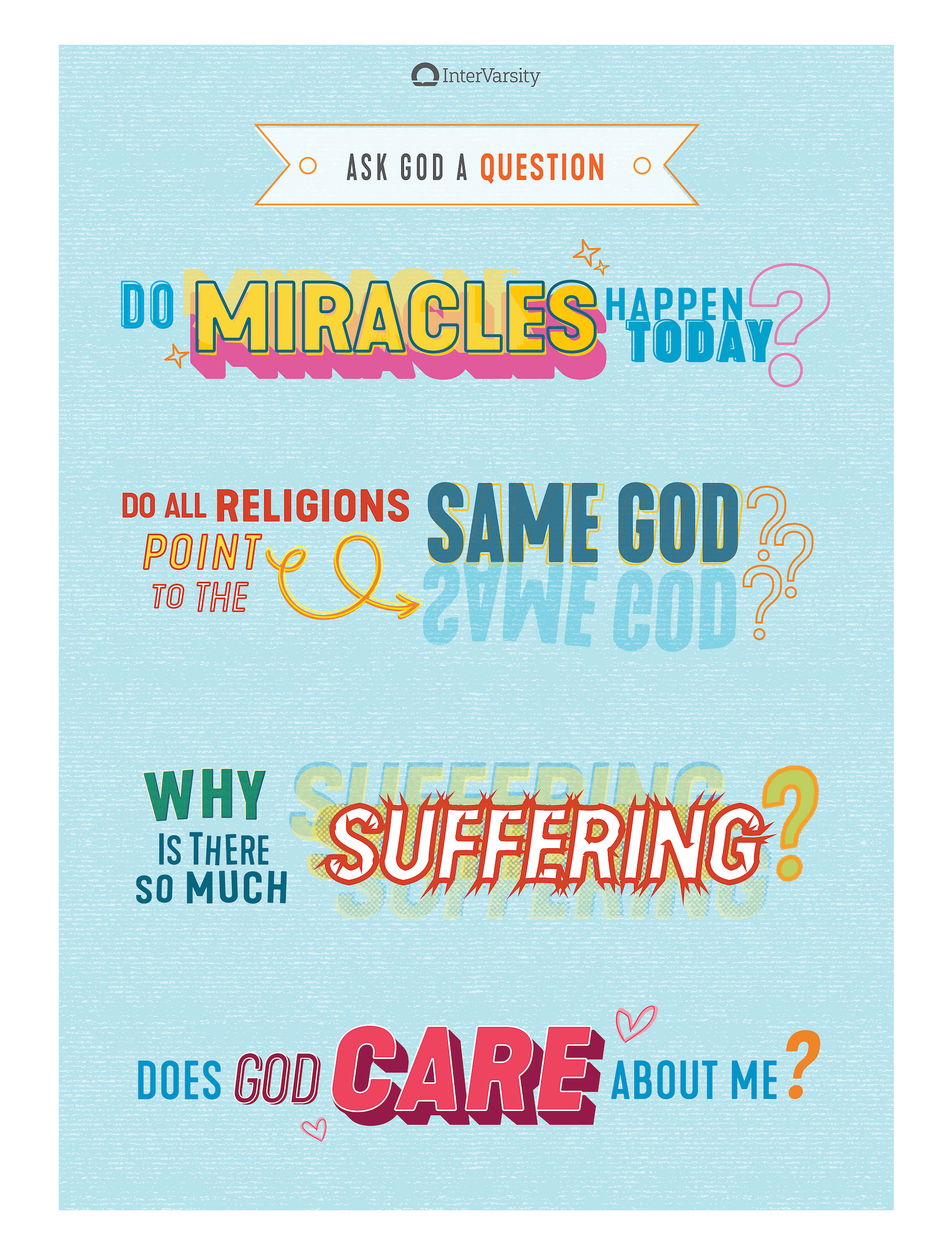 - Panel 1: We invite someone to ask one of four common questions about God.