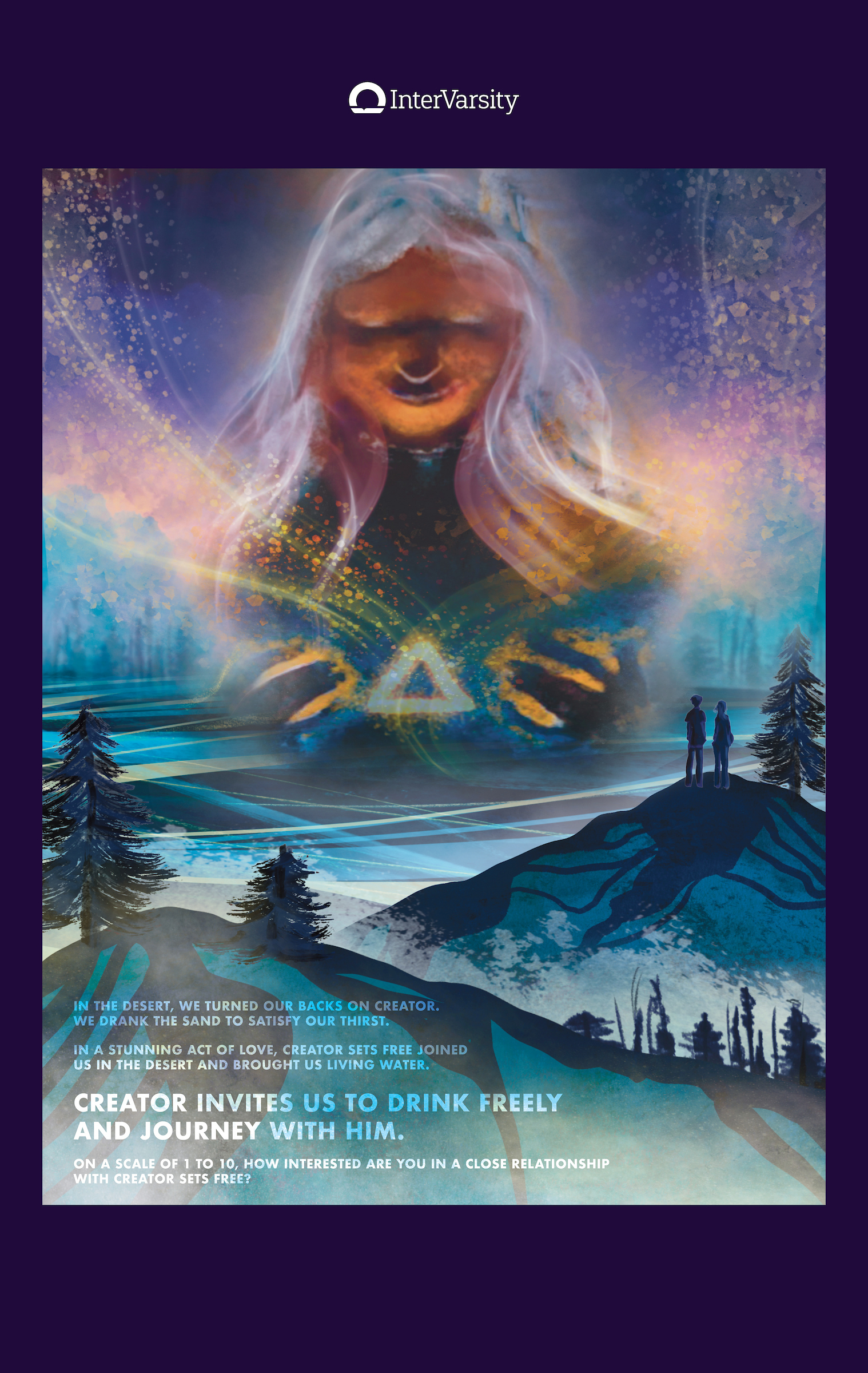 This art display outreach (Proxe) features a Native-influenced gospel allegory which engages both Christians and non-Christians with the brokenness of our world and Creator's restorative beauty. Students have been stunned to see Creator Sets Free (Jesus), who meets them in life's deserts and offers to transform all things.